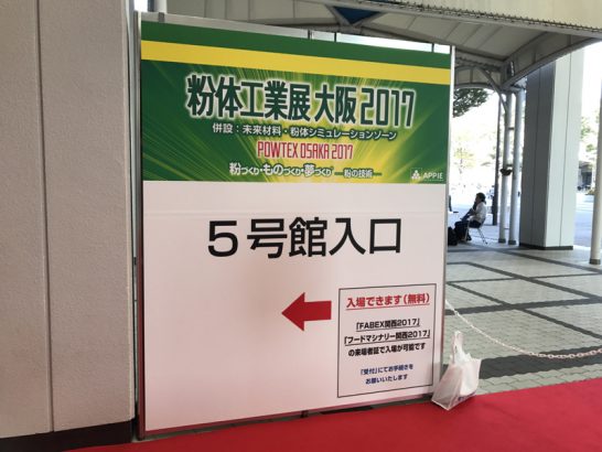 昨日はインテックス大阪で開催中の粉体工業展大阪2017を見学してきました。こちらの展示会は隔年で東京と大阪で開催される化学、食品、薬品、鉱業などの製造において材料となる粉を、作り・計り・運ぶ「粉体技術」の専門展です。今年は大阪で開催されました。公式ホームページによると今回が12回目とのことですが、一般社団法人日本粉体工業技術協会主催の前身となる展示会も含めるともっと以前から続く歴史ある展示会だそうです。