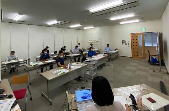 これ以外にも1時間ごとに休憩をとって窓を開け換気をし、講座中入口のドアはずっと開けたままにし、手の消毒をお願いする。1社からのリアル参加人数を1名とし、隣の人との間隔を開け、2人以上の参加を希望されるところはオンライン配信で対応するなど感染予防も徹底されていました。