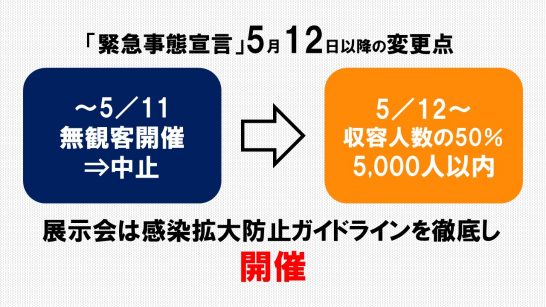 5月7日(金)「宣言延長」だけど「対策緩和」⇒開催宣言