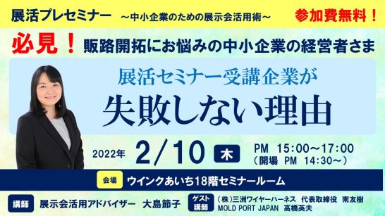 2月10日(木)15時からウインクあいちで開催される展活プレセミナー。今年はこちらのゲスト講師から自社の展示会活用法を語っていただきます。