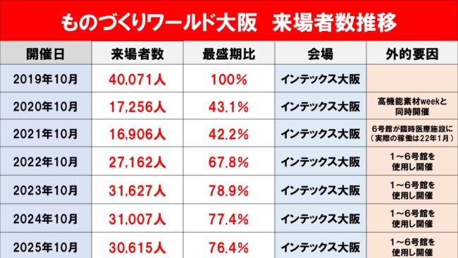 ものづくりワールド大阪2025 来場者数推移