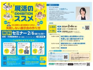 少し前まではこの時期にしめ縄とかを神社で焼いてましたよね。最近は焼けなくなってしまったようです。そんな早朝の大阪から今朝も展活タイムズをお届けします。 理論と実践がセットで学べるコラボセミナー第2弾 昨年5月、広島県福山 […]