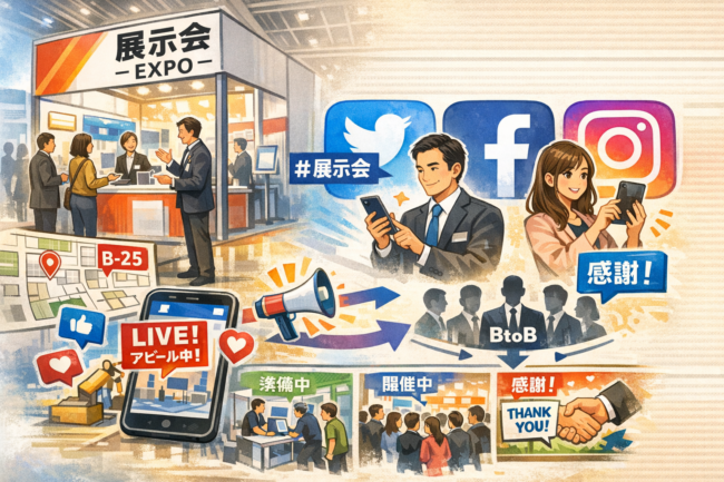 今は展示会の集客にSNSは欠かせません。 しかし目的は「バズること(=不特定多数に見られること)」ではありません。 「展示会で出会いたい人に来場してもらうこと」です。