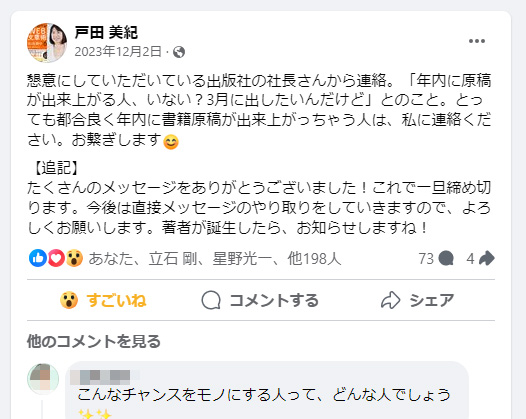 投稿主はライターの戸田美紀さん。 その内容がこちらです。