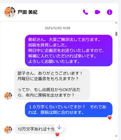 震える手でスマホを握りしめ、美紀さんにメッセンジャーを送ったのを今でも鮮明に覚えています。 迷ったのはほんの一瞬でした。