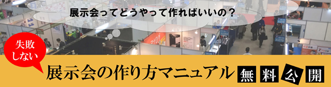 展活では「展示会の作り方マニュアル」というこれさえ読んできちんと実践すればはじめての展示会でも失敗しないマニュアルを公開しています。あなたの会社の展示会チャレンジにぜひご活用ください!