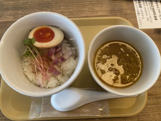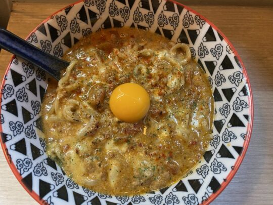 岡山駅前のイオンモールにあるインド料理屋さん。ナンカレーやカレーライスの他にの他にビリヤニ、カレーパスタなど色々選べるお店。その中からカレーラーメンを選択。トマトベースの少し酸味があるカレースープに卵と鶏肉がトッピング。乾燥パクチーが良いアクセントに。甘口から超激辛まで6段階選べて辛口を選択。全然辛くなかったけど、激辛を選ぶ勇気はないw(2024年10月)