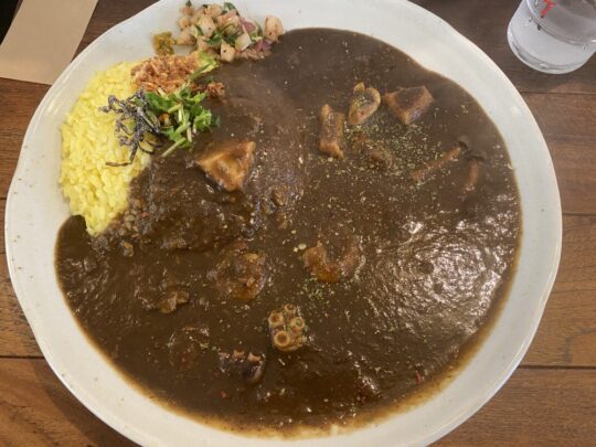 はじめて知ったカレー屋さんですが、本店は大阪の本町で和歌山の新宮や福岡の久留米にも支店があるのですね。トッピングを楽しむタイプのカレーなのは明らかなのでシュリンプカレーを食べてみたかったのですが売り切れで、他にも結構売り切れが多かったです。プレーンだと見た目も寂しいですね(^^ゞ ルーは独特の強い甘みがあってクセになりそうな味。(2024年3月)